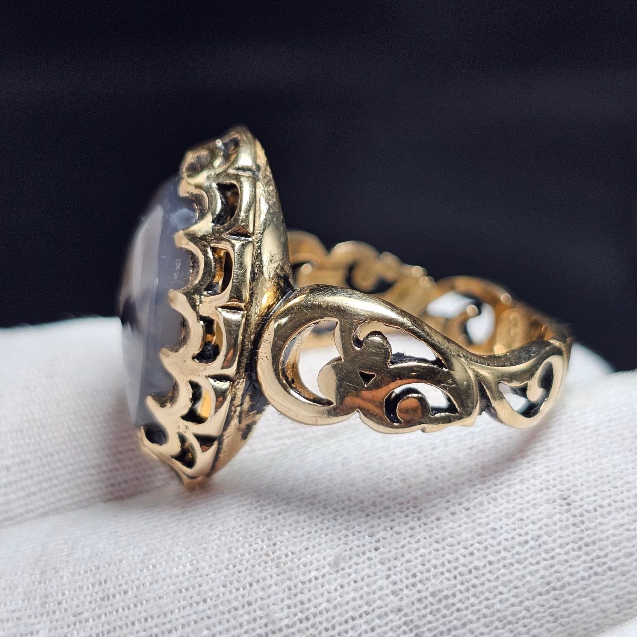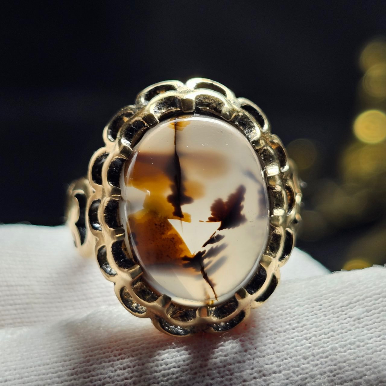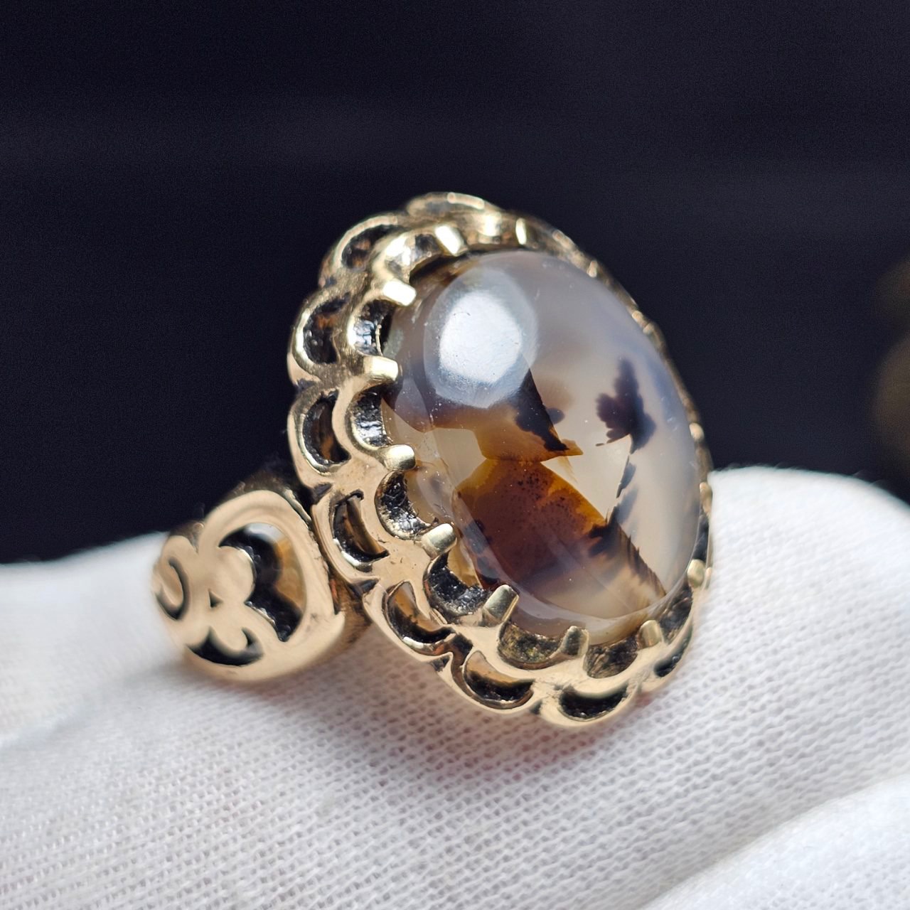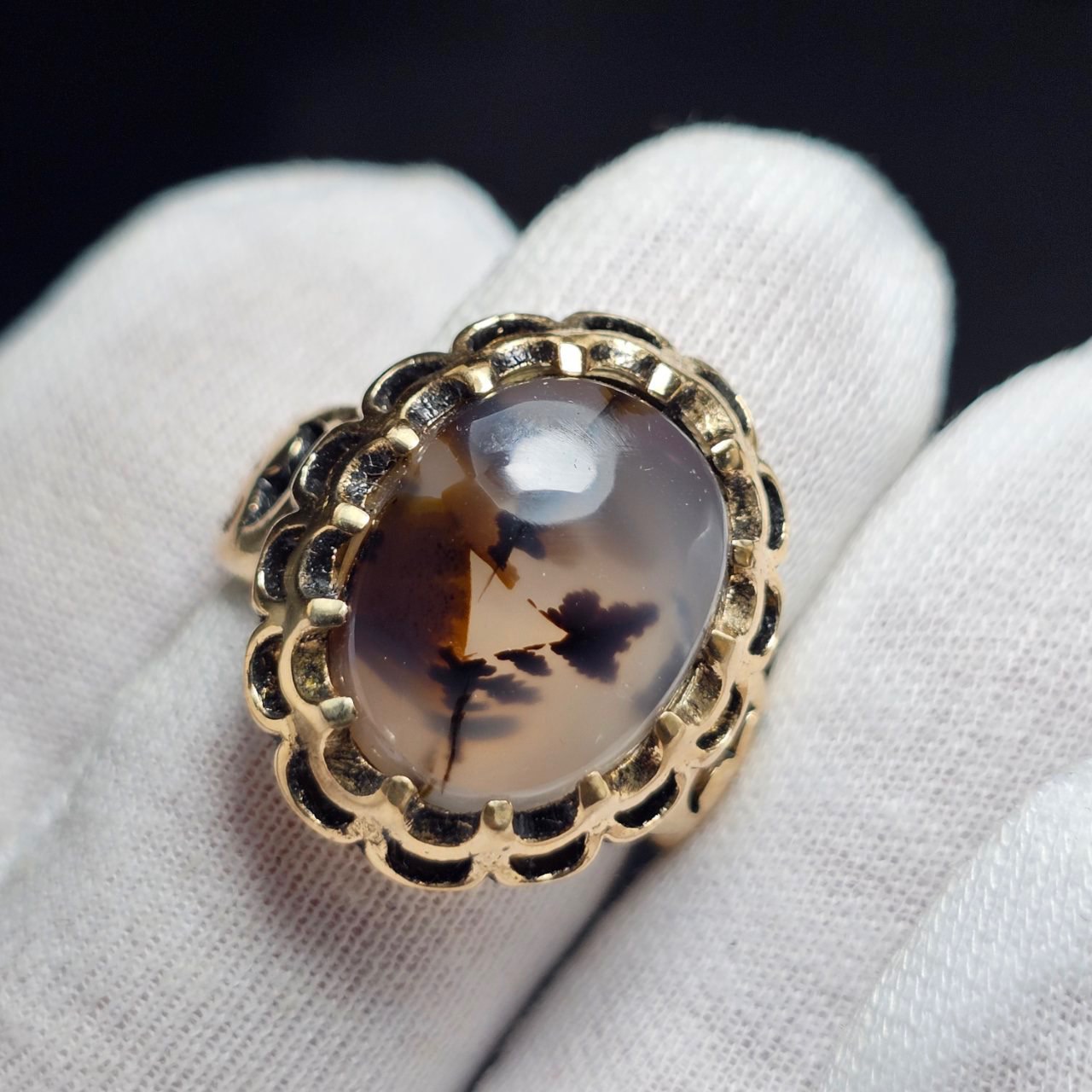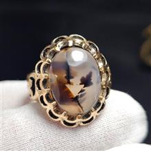 انگشتر طلا روس با سنگ عقیق شجر معدنی قائن