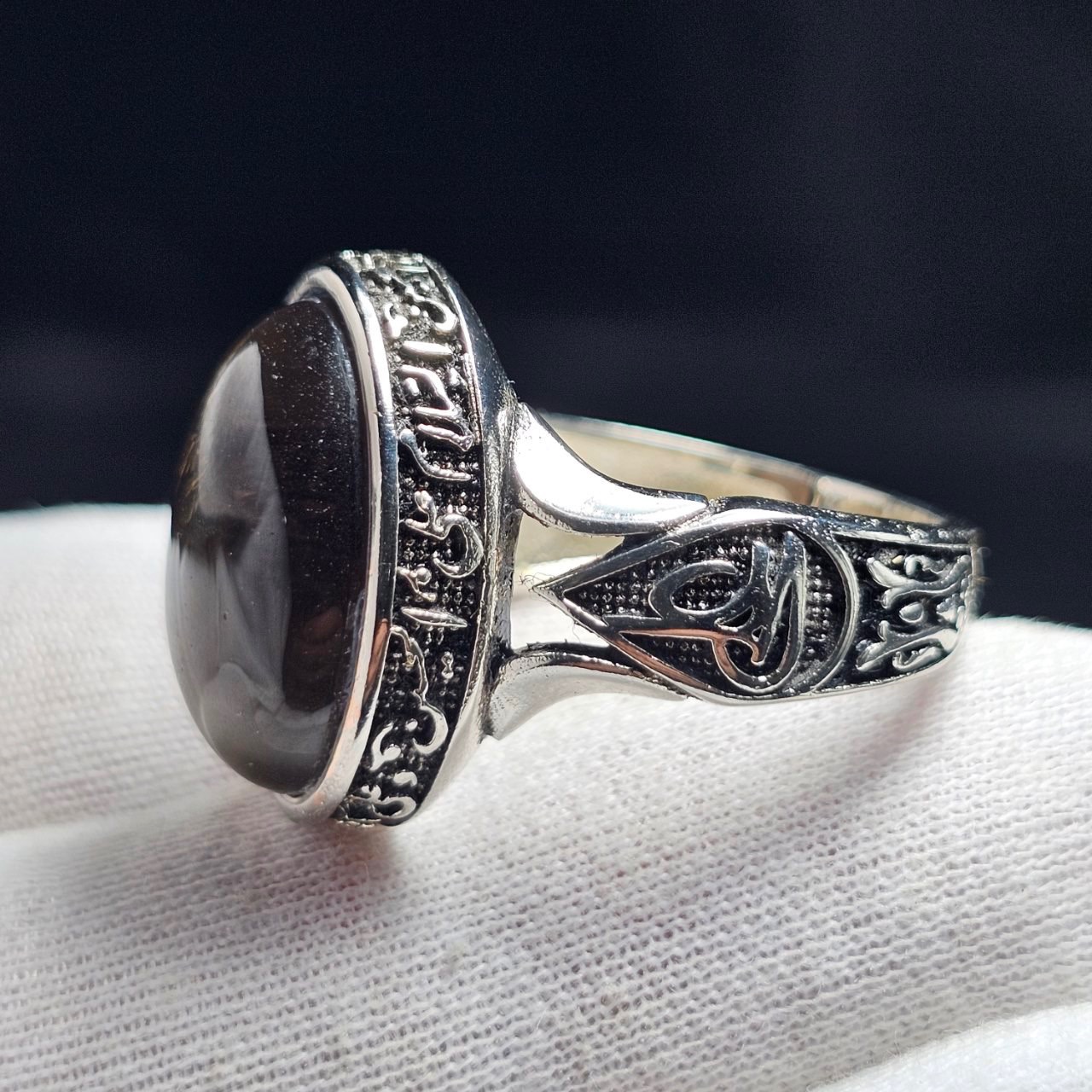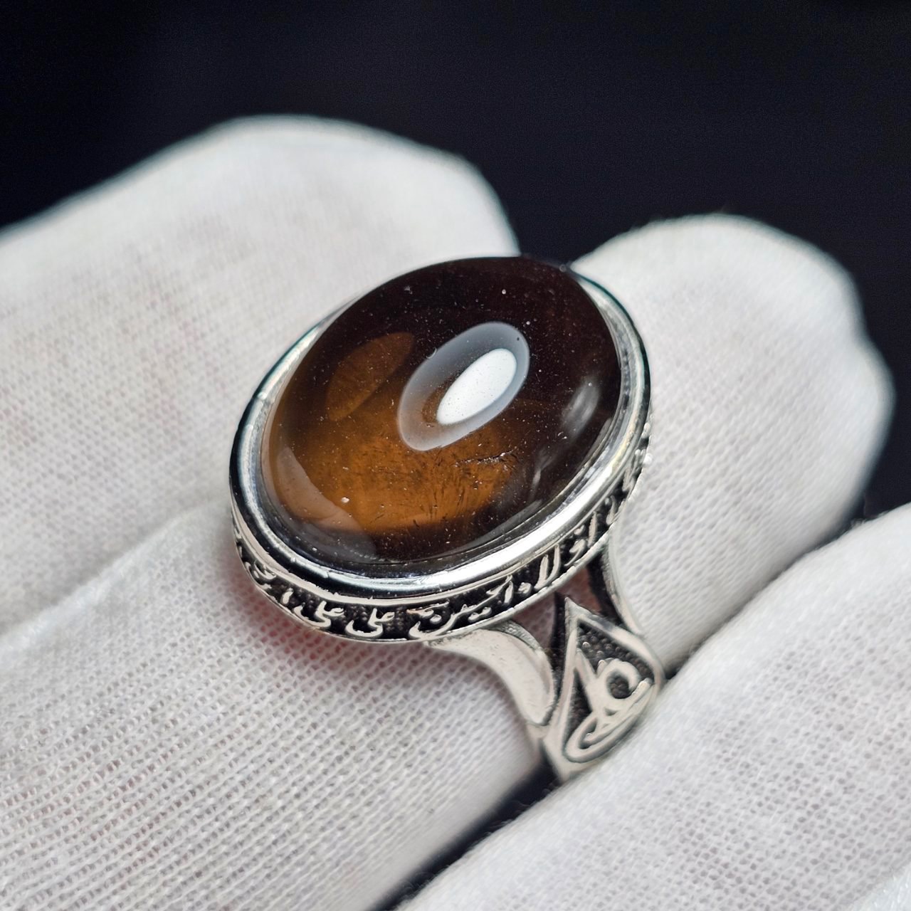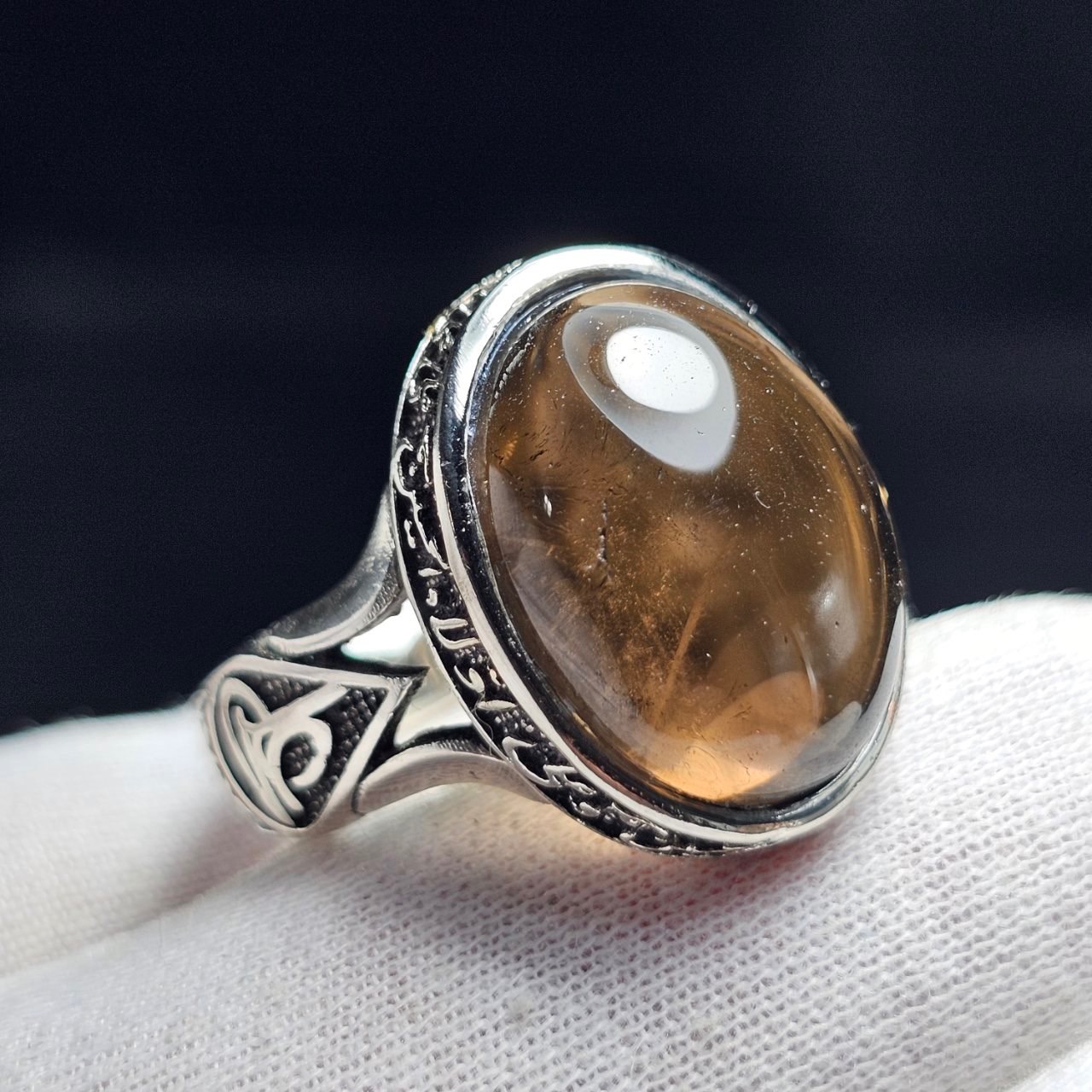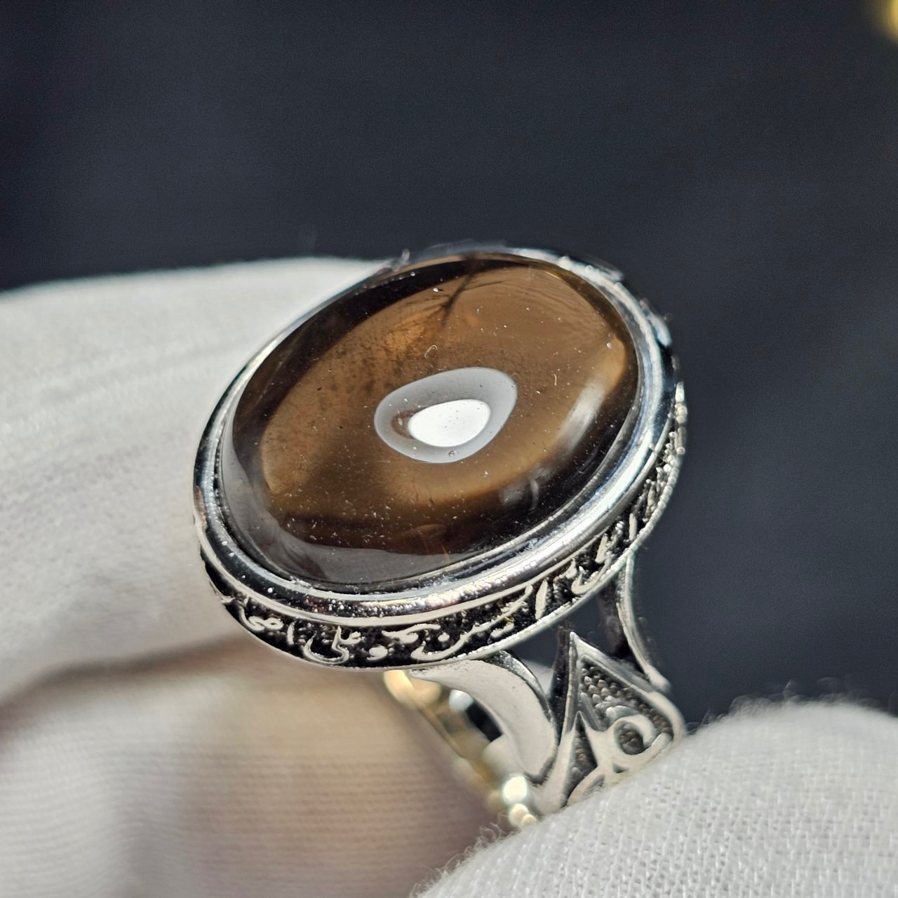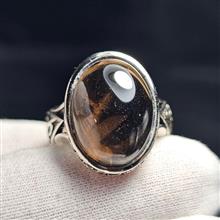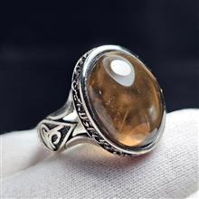 انگشتر با سنگ طبیعی کوارتز دودی معدنی (ابکاری نقره ای)