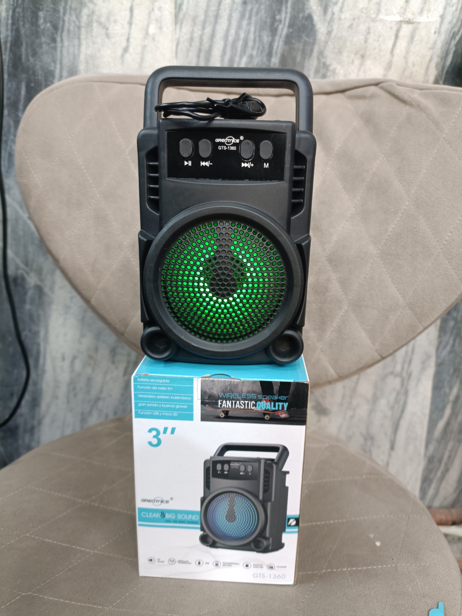 در بستهبندی اسپیکر GTS-1360، یک کابل microUSB برای شارژ دستگاه و دفترچه راهنمای کاربری قرار دارد. این اقلام امکان استفاده فوری از دستگاه را بدون نیاز به تجهیزات اضافه فراهم میکنند